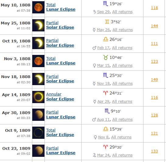 The 1827 Saturn/Neptune opposition coincided with the same Saros eclipse combination when Hahnemann was at the height of his intellectual and medical influence, marked with the publication of Volume 6 of his seminal work Reine Arzneimittellehre (The Pure Materia Medica) a cornerstone of homeopathic theory.